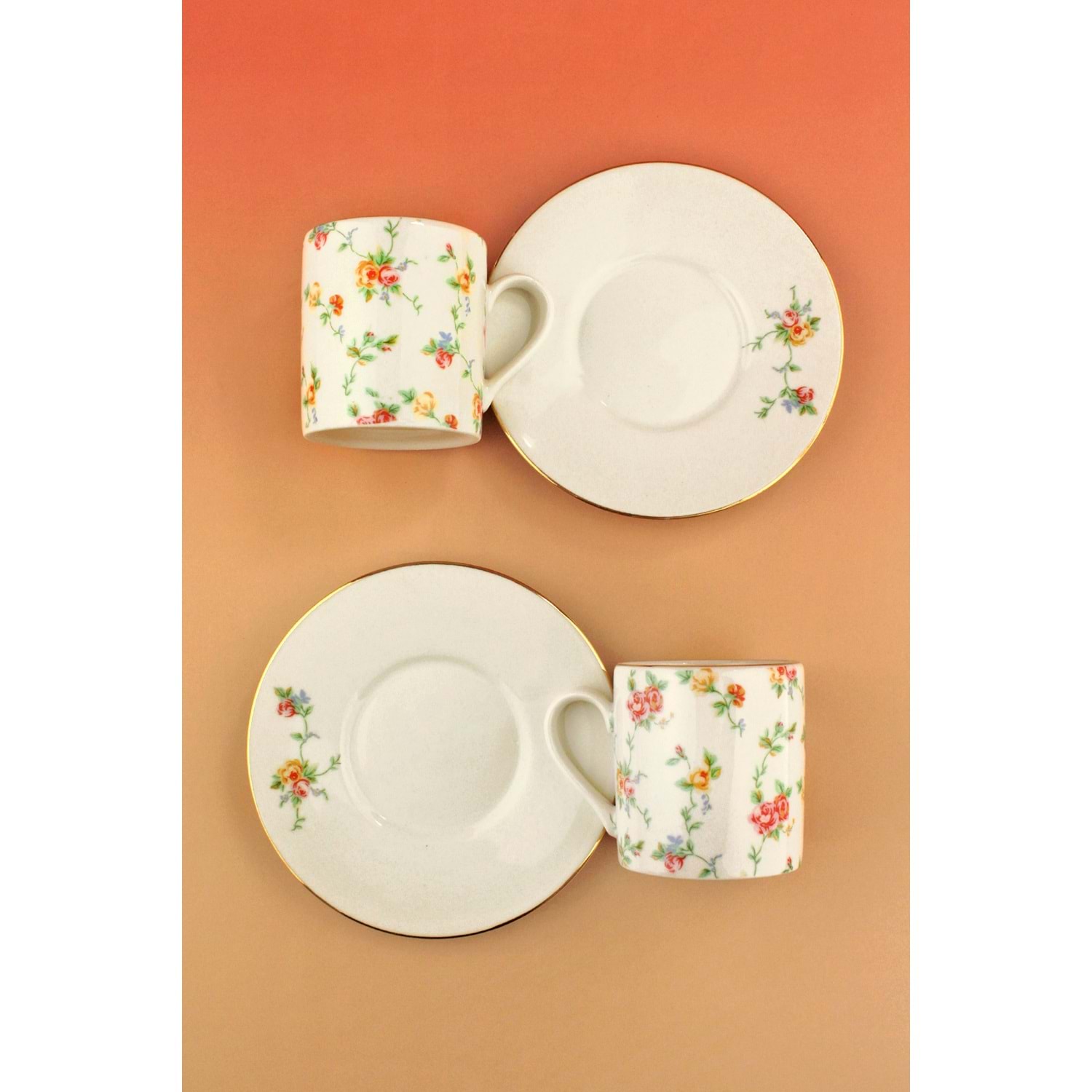 2 adet porselen çay fincanı ( 150 ml ) ve tabağı, toplam 4 parça
