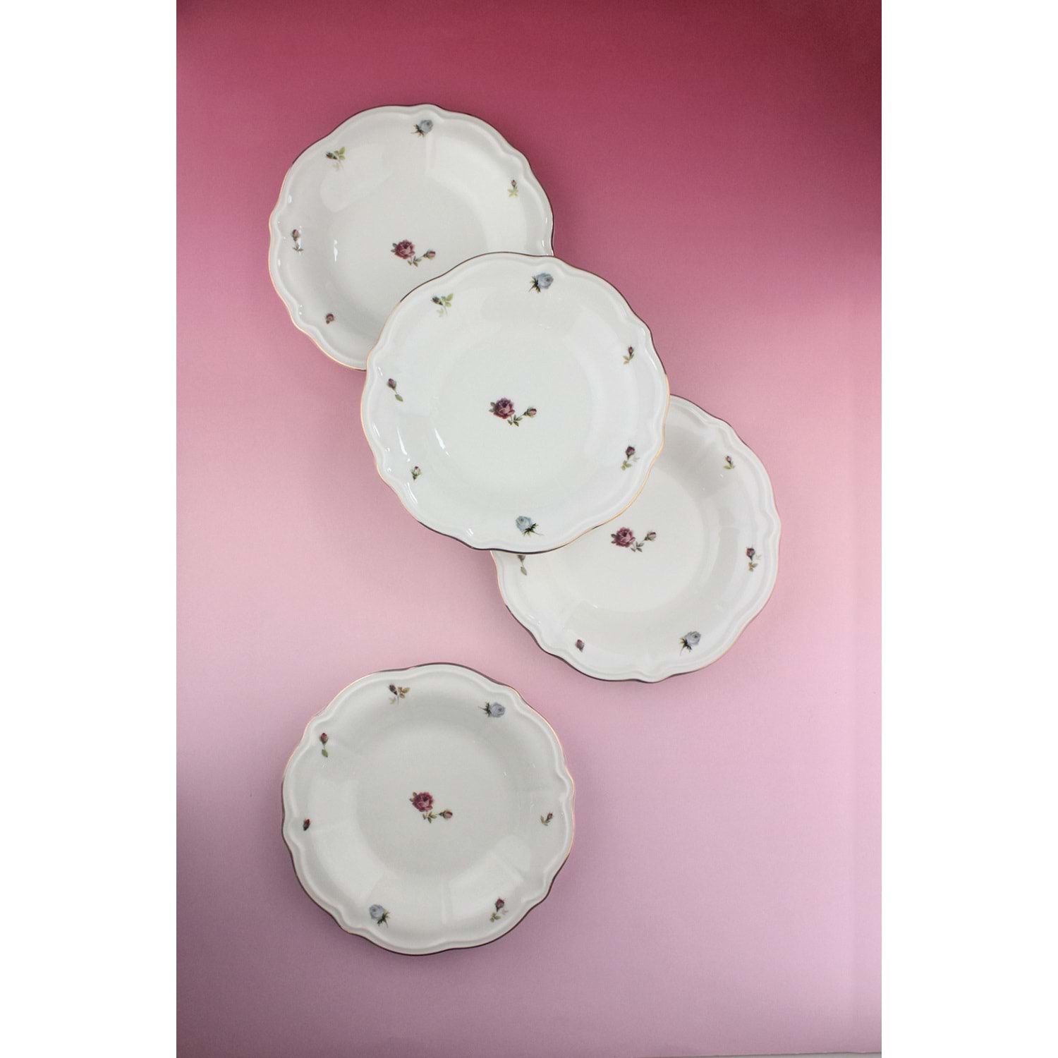 Angela altın yaldızlı 4 parça porselen yemek tabağı