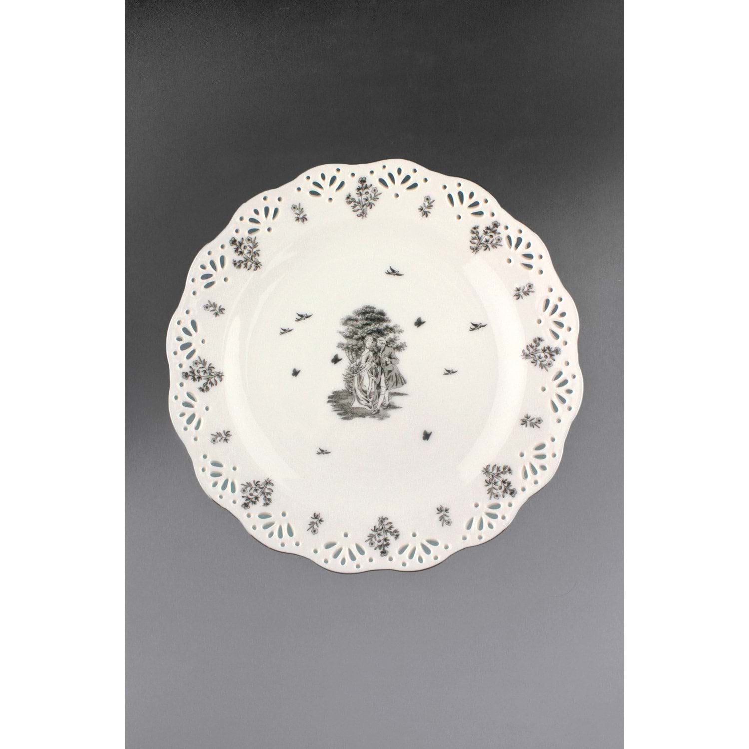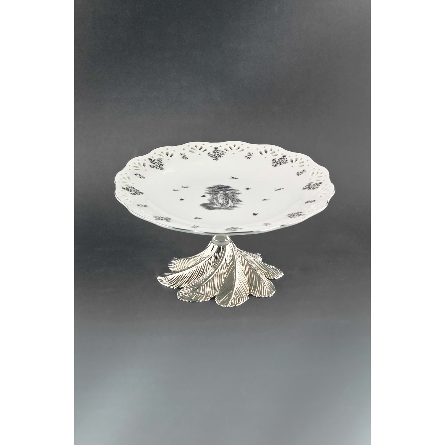 1 adet metal ayaklı porselen tabak çapı 23 cm, yükseklik 11 cm,