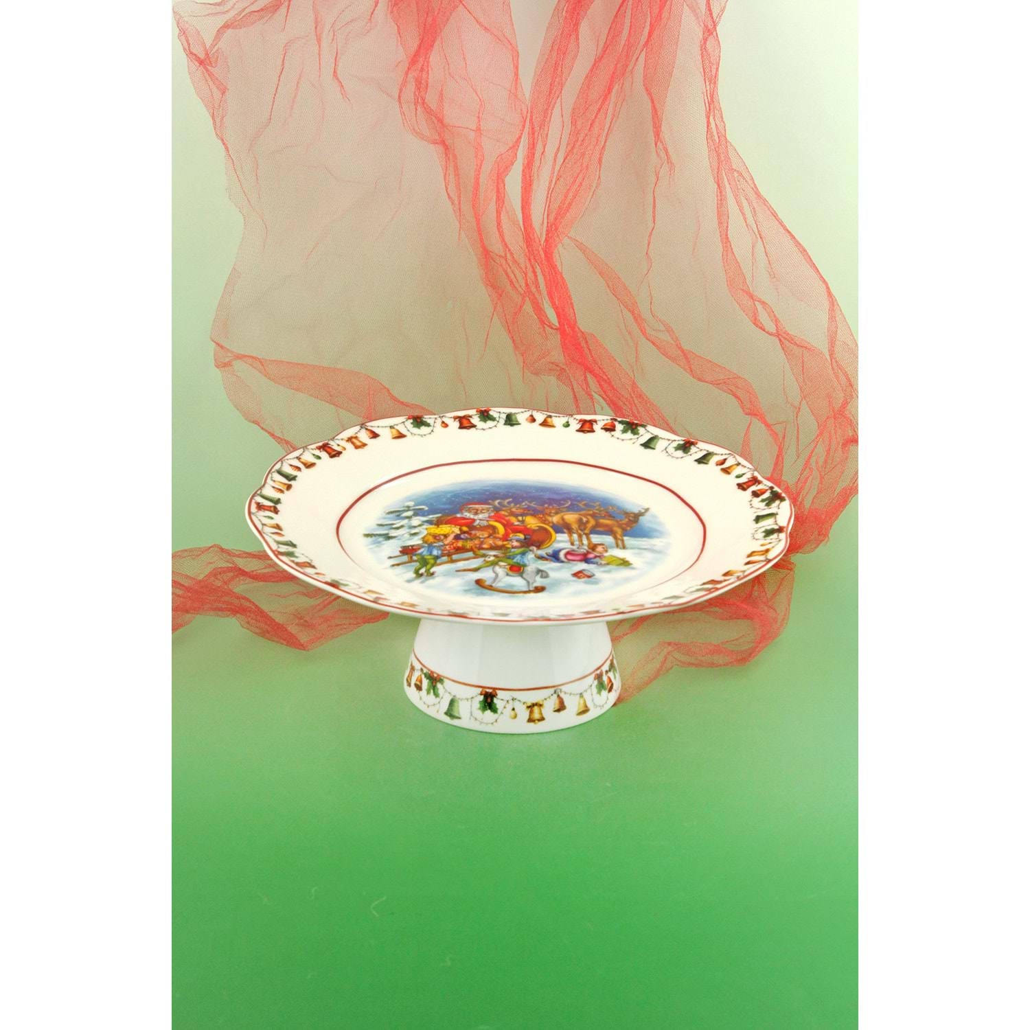 1 adet metal ayaklı porselen tabak çapı 26 cm, yükseklik 10 cm,