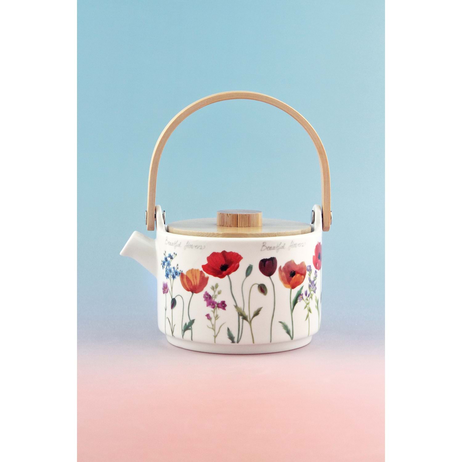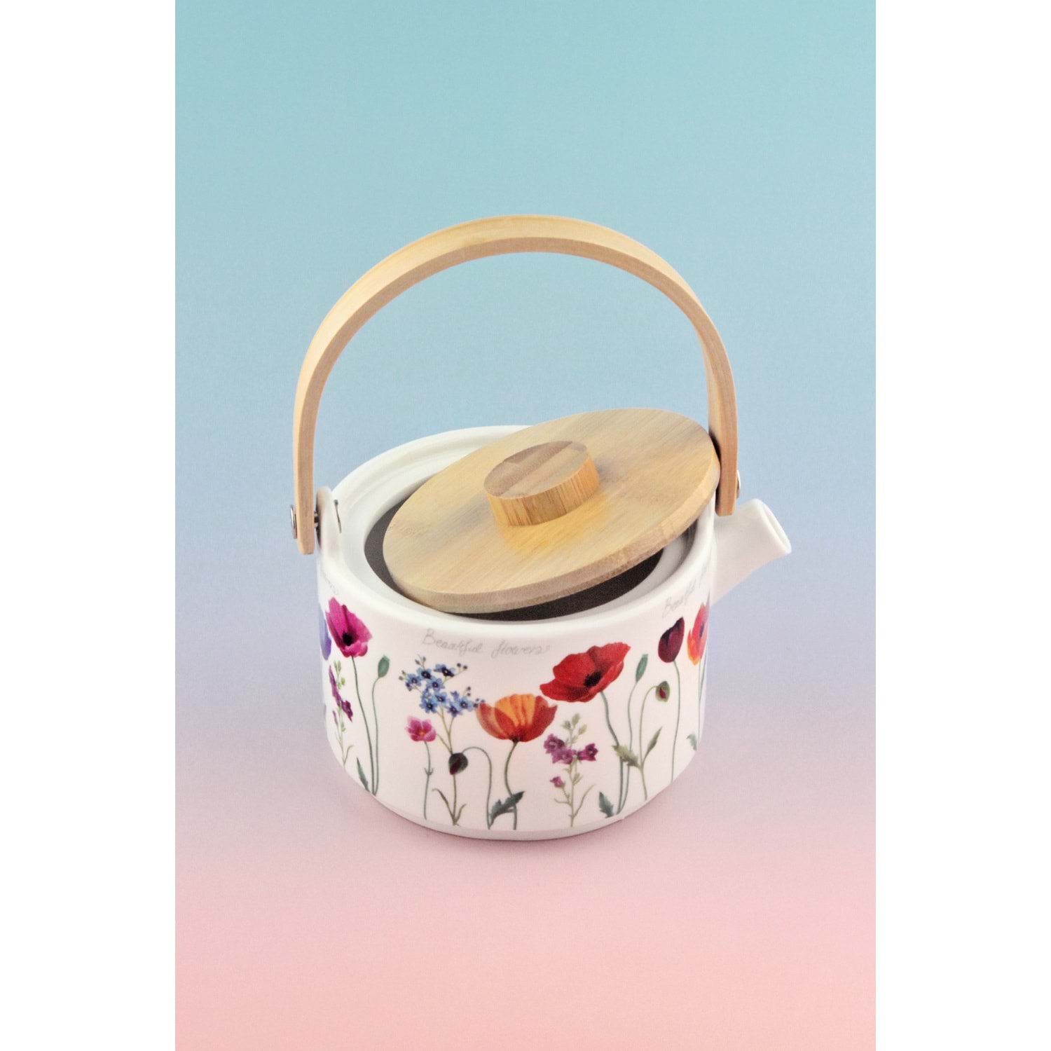 Beautiful flowers bambu kapaklı mini porselen demlik