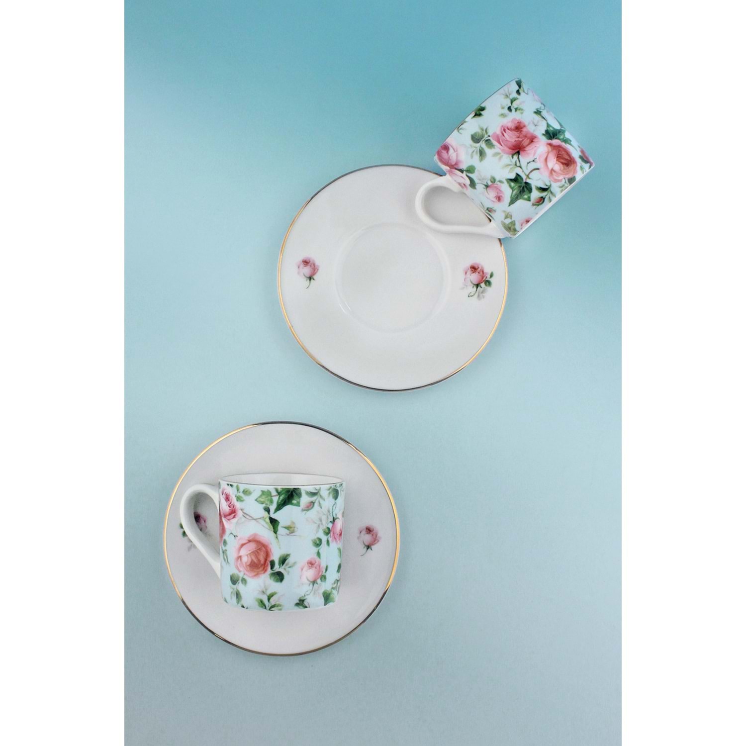 2 adet porselen kahve fincanı ve tabağı, toplam 4 parça