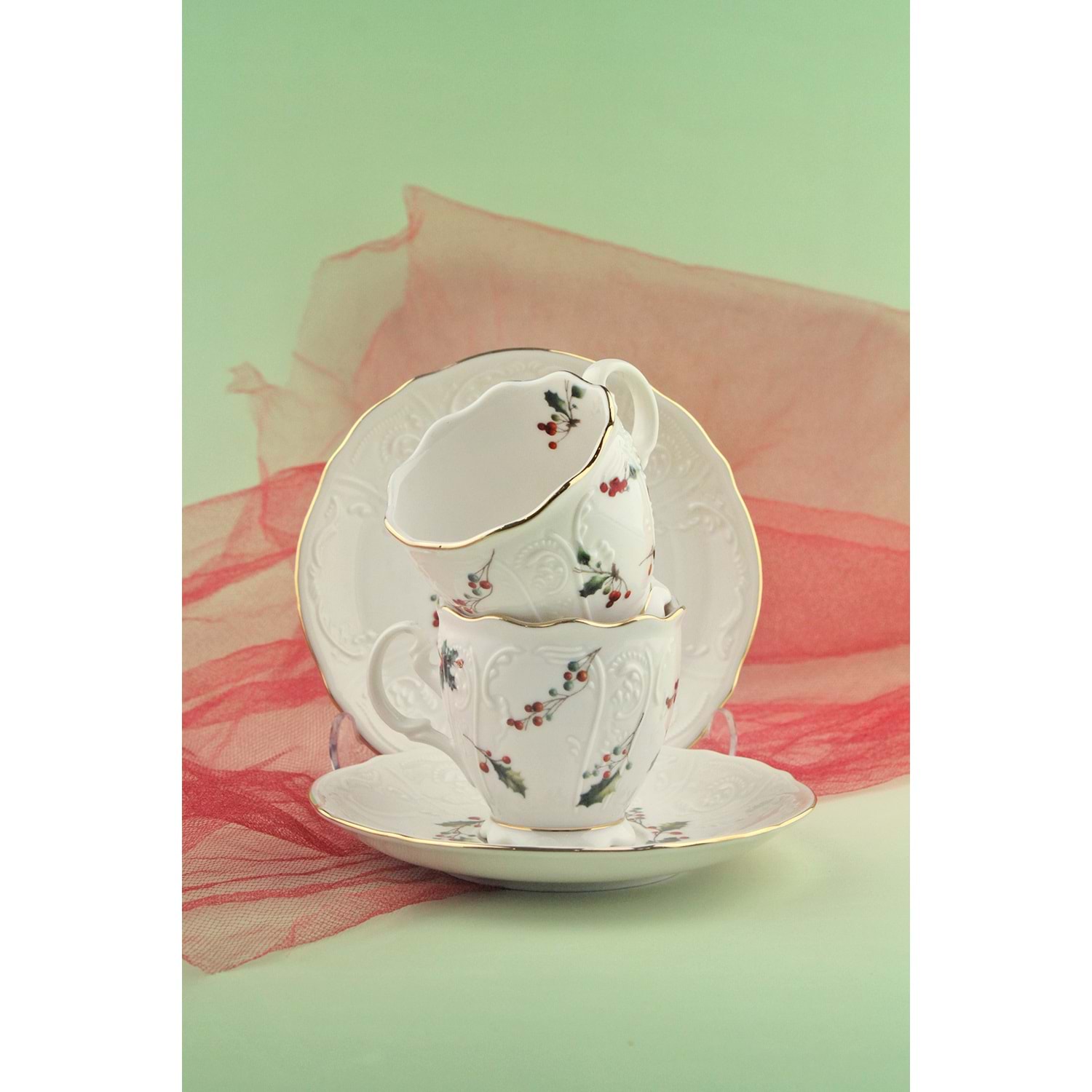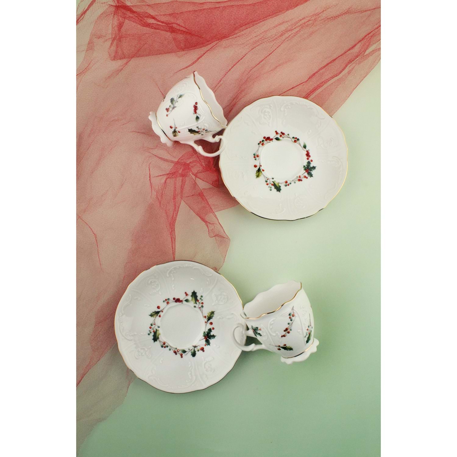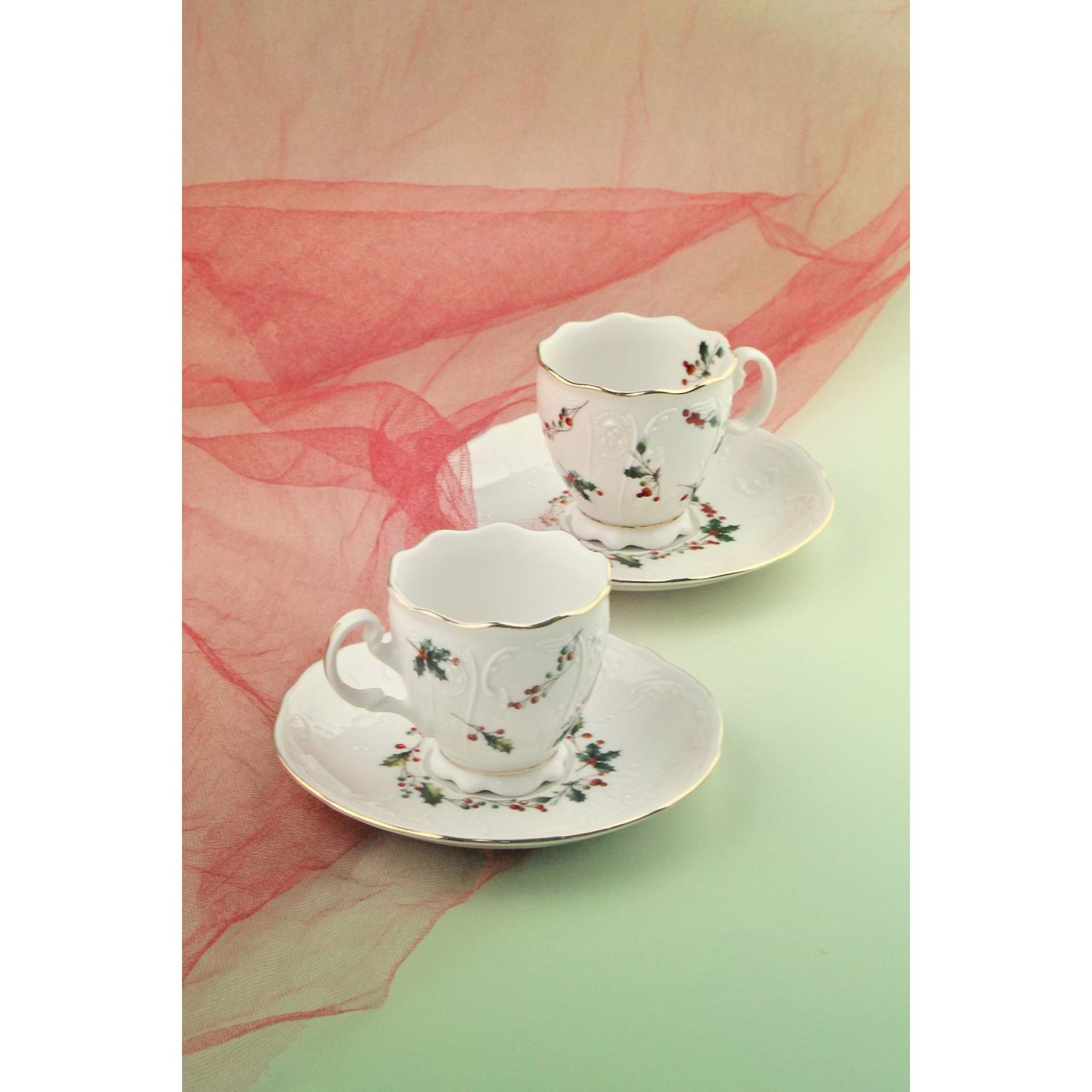Christmas altın yaldızlı 2 kişilik porselen kahve fincan takımı