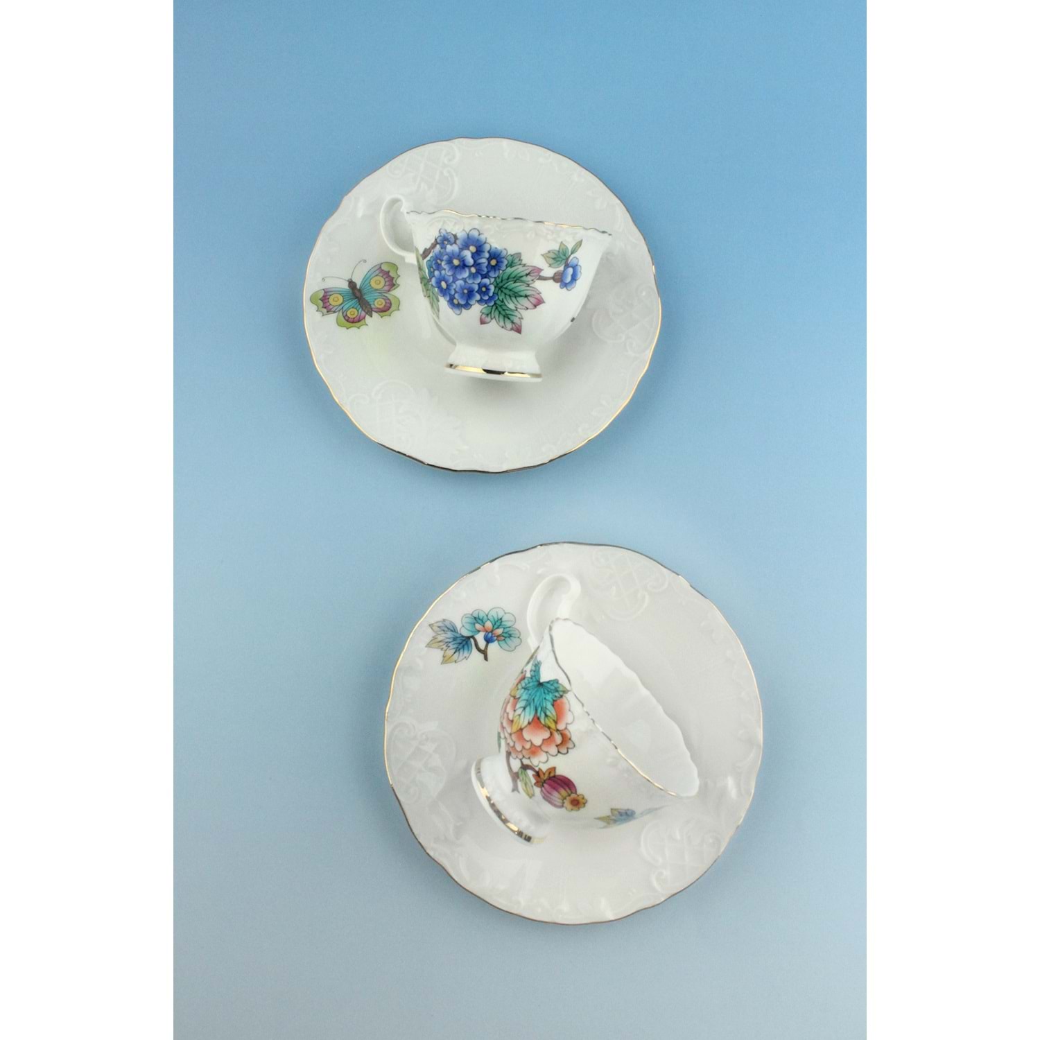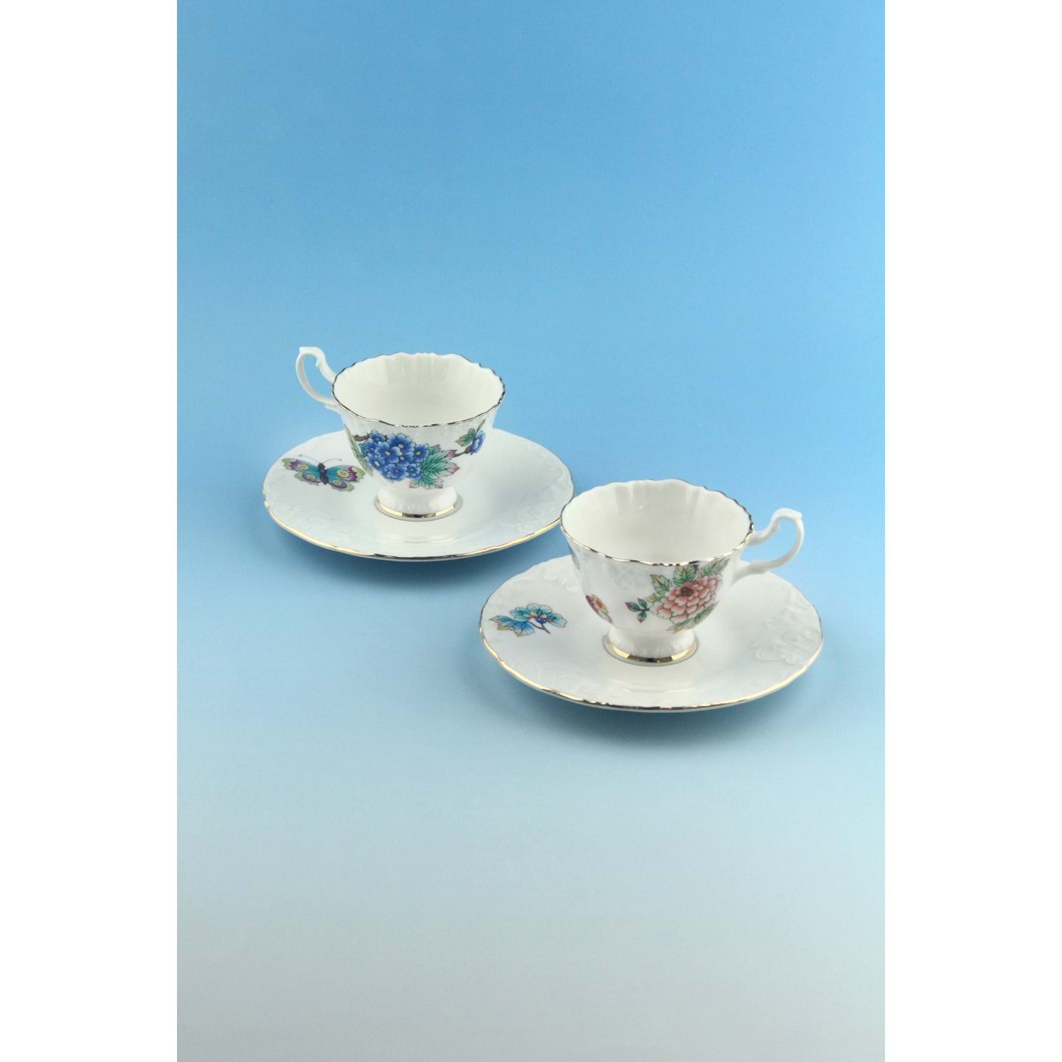 2 adet porselen kahve fincanı ve tabağı, toplam 4 parça