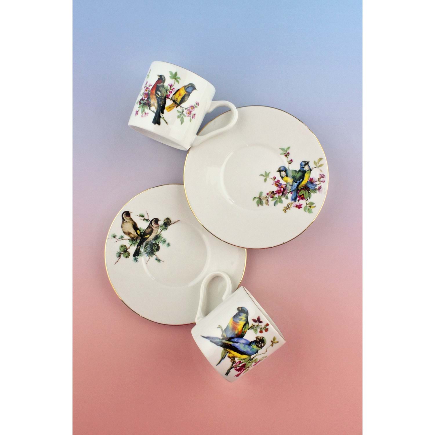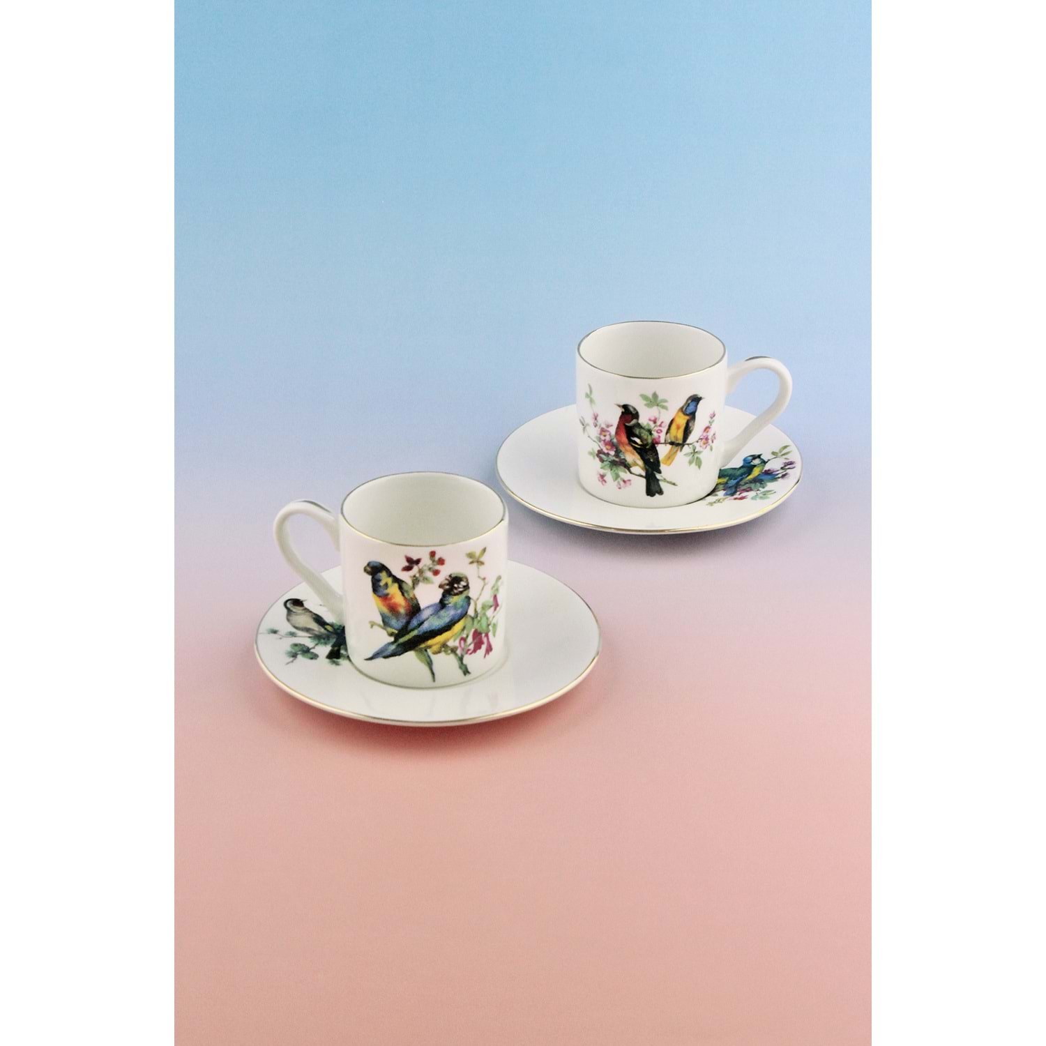 2 adet porselen kahve fincanı ve tabağı, toplam 4 parça