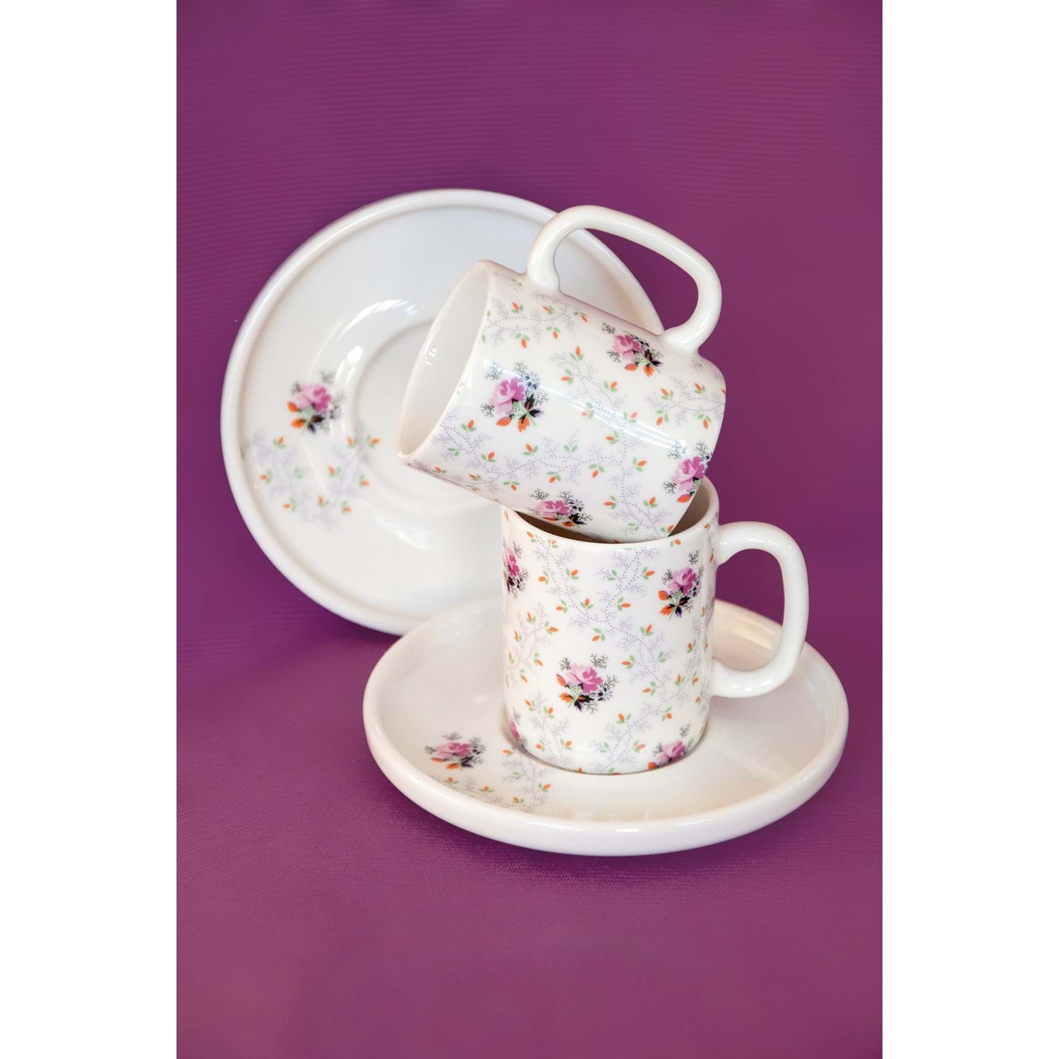 <ul><li>2 adet porselen kahve fincanı ve tabağı, toplam 4 parça</li><li>Bulaşık makinesinde rahatlıkla yıkanabilir, solma yapmaz, ömür boyu desen garantilidir,</li><li><u>BURSA PORSELEN DEKOR</u> tarafından dekorlanmıştır,</li></ul><p><br></p>