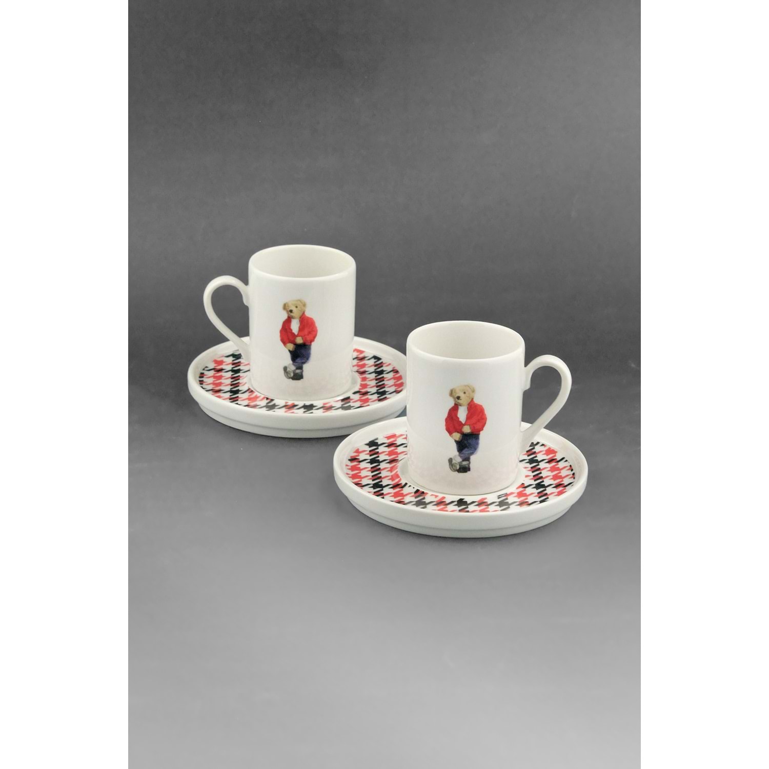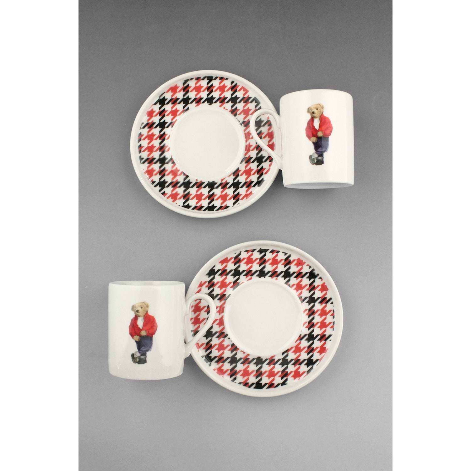 Teddy bear jeans iki kişilik porselen kahve fincan takımı