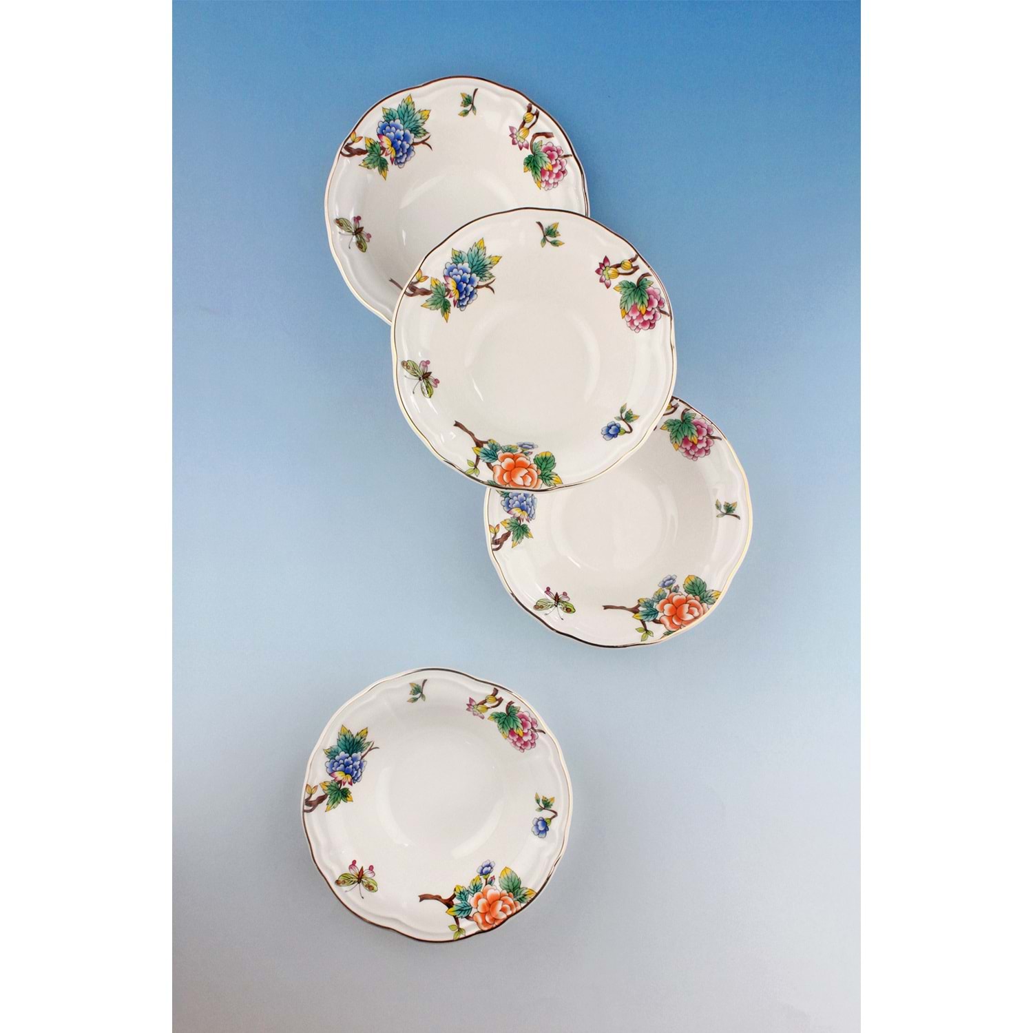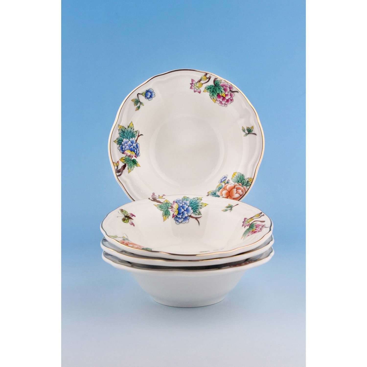 Çiçek buketi altın yaldızlı 4 parça porselen kase