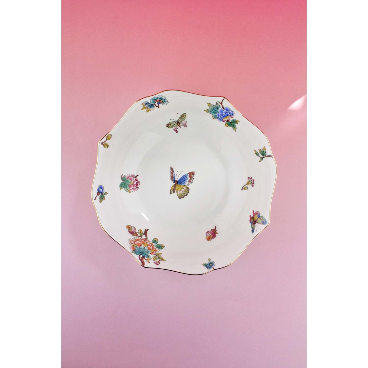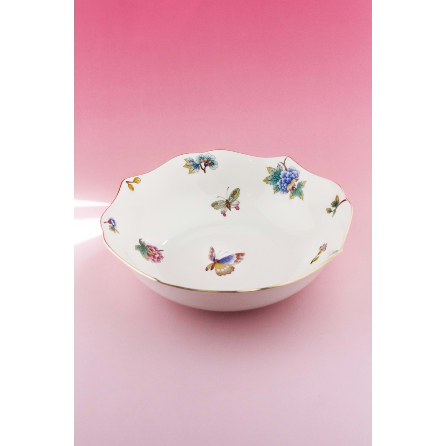 Çiçek buketi altın yaldızlı porselen salata kasesi