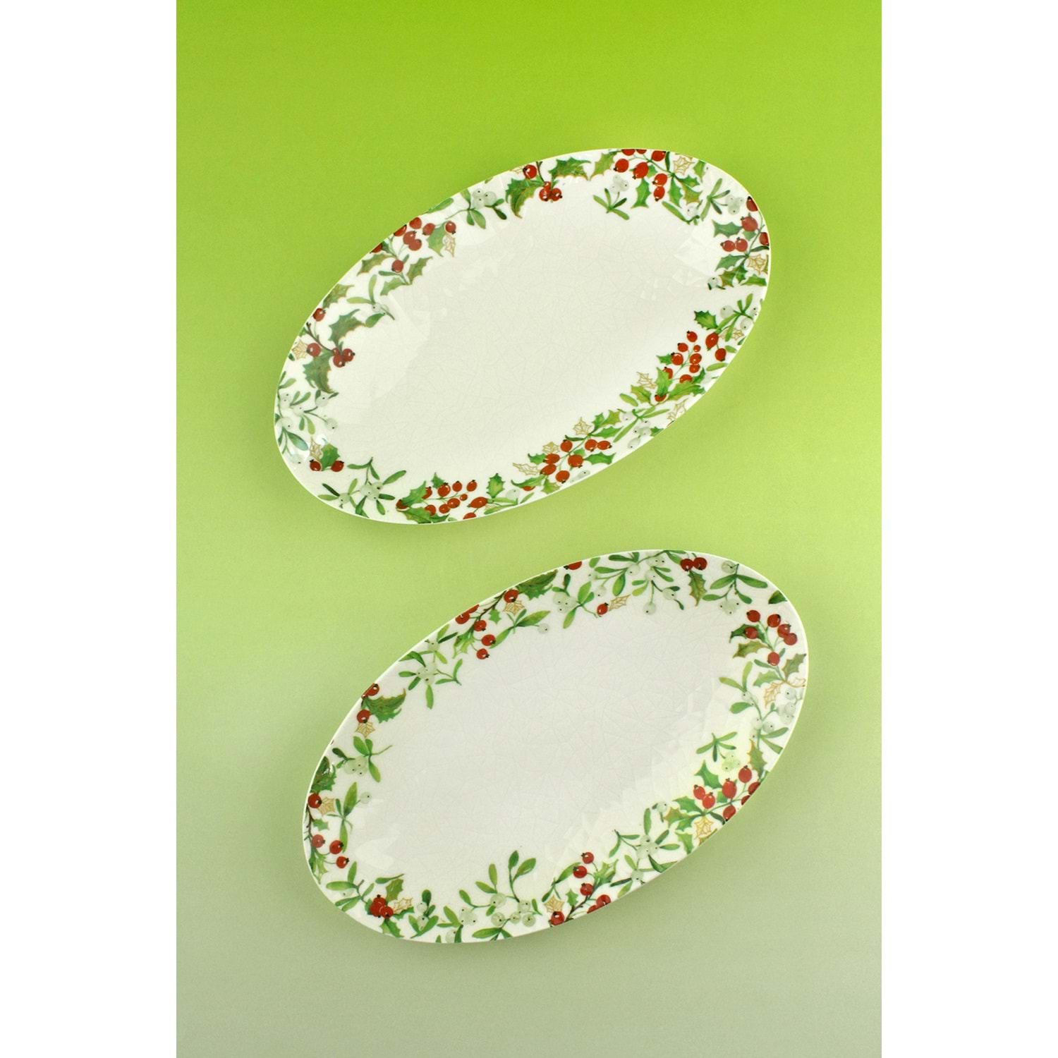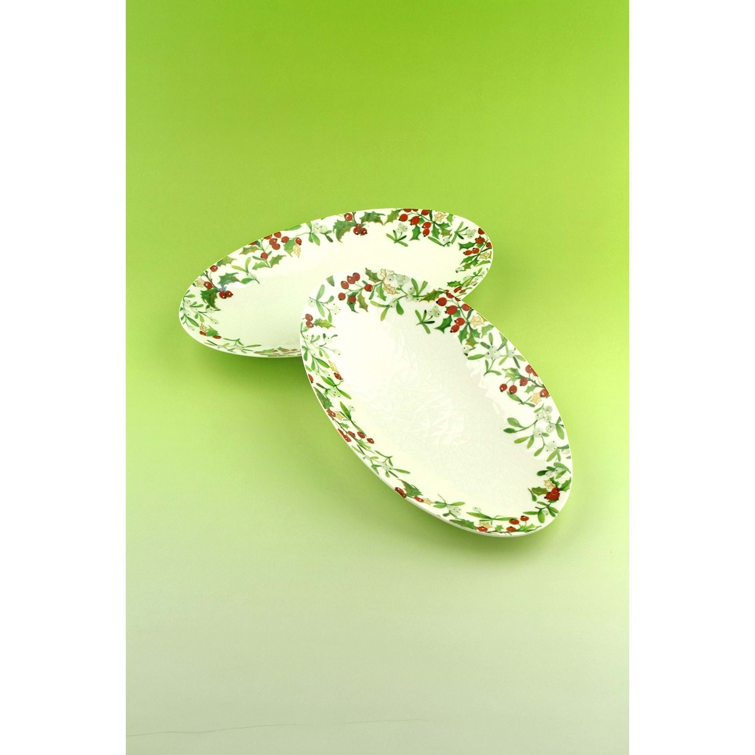 Holly berries 2 adet porselen kayık tabak