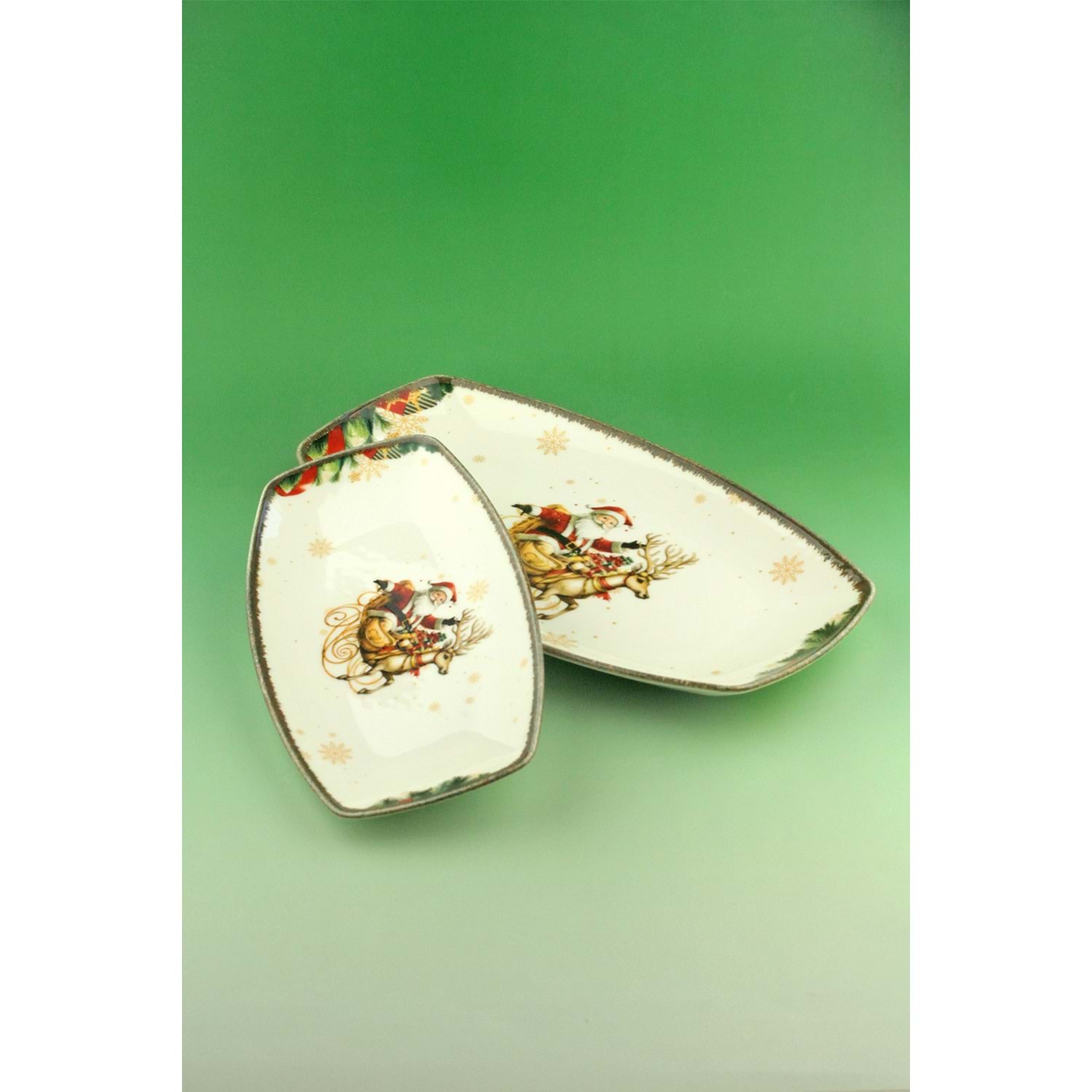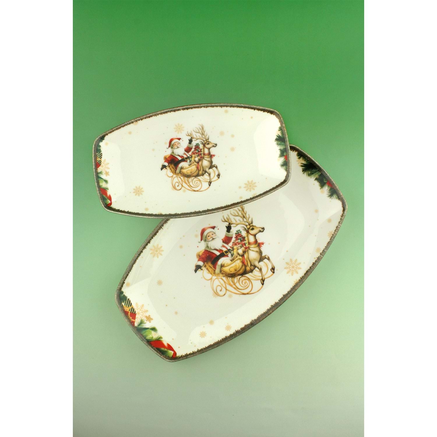 Retro christmas reindeer 2 boy porselen kayık tabak