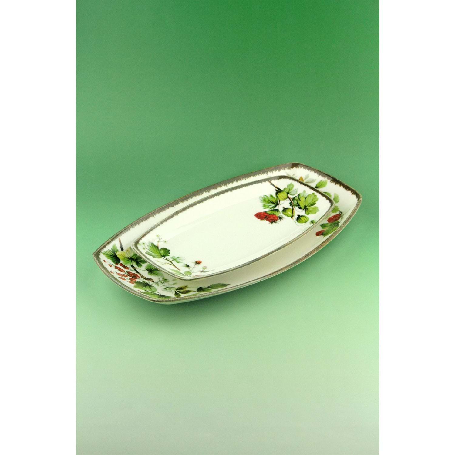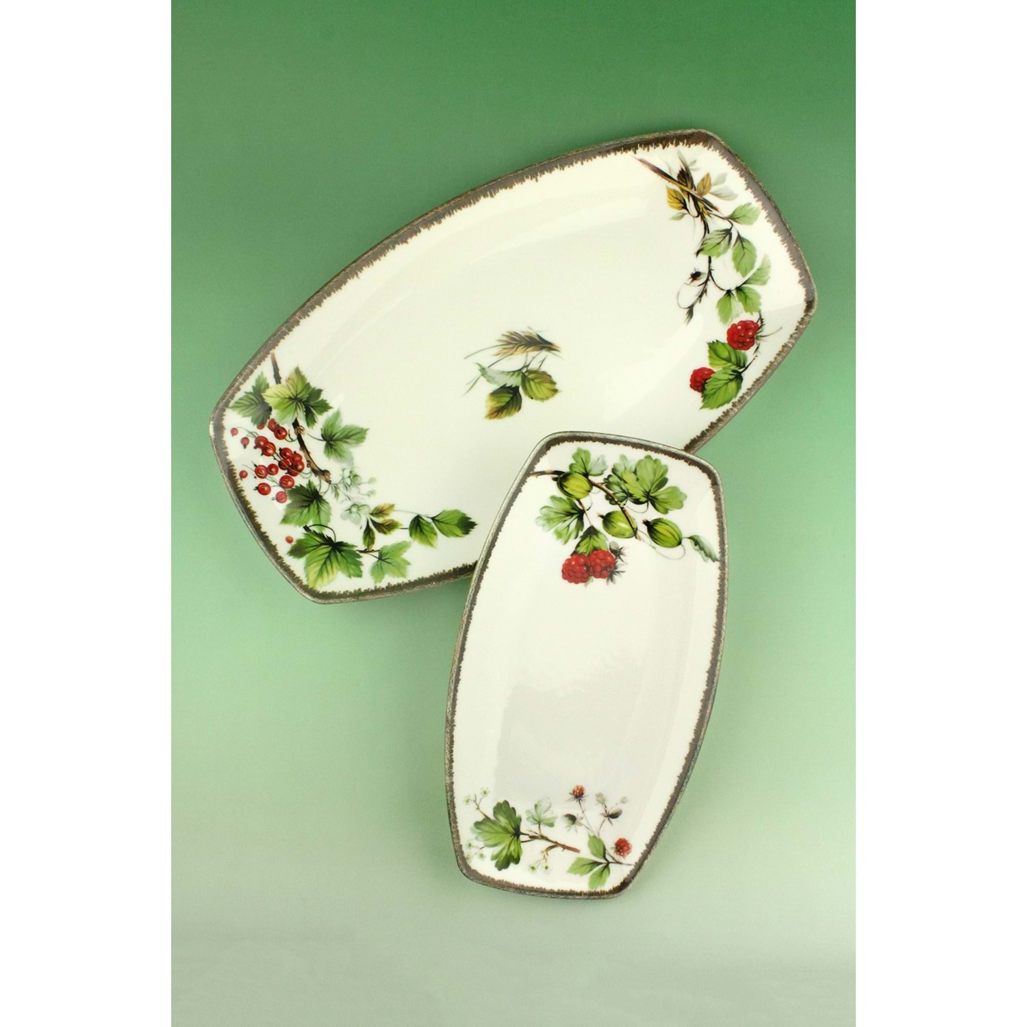 Retro red berries 2 boy porselen kayık tabak