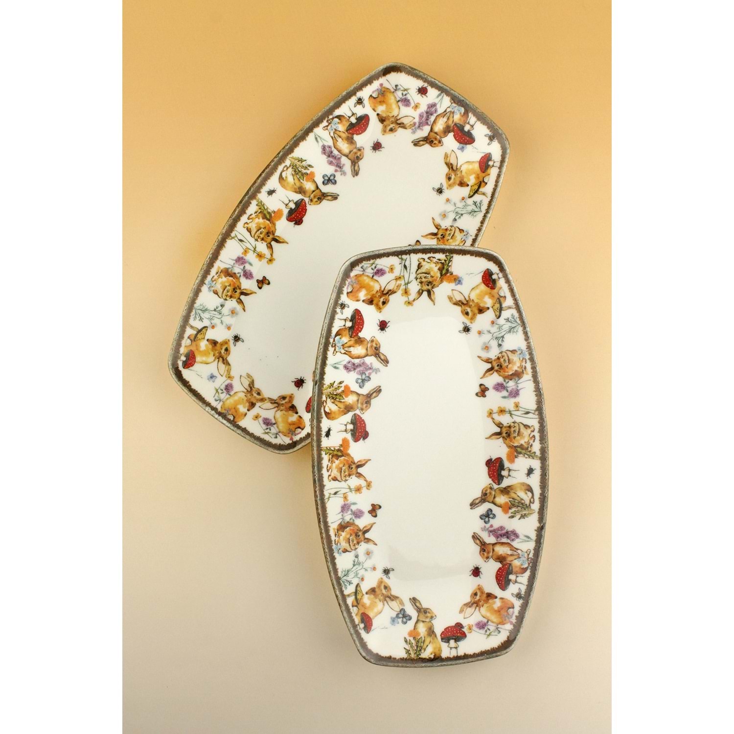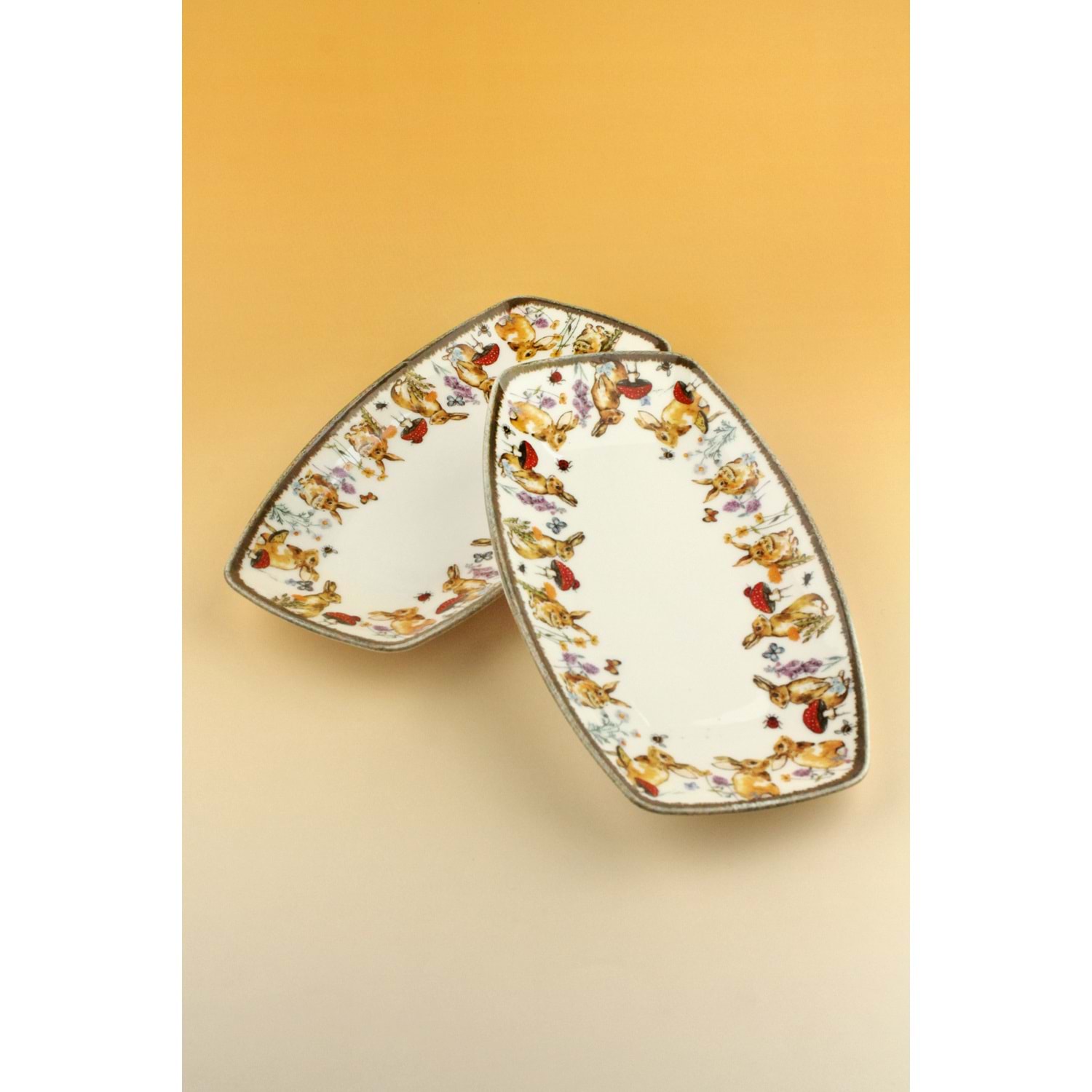 Retro tavşan 2 adet orta boy porselen kayık tabak