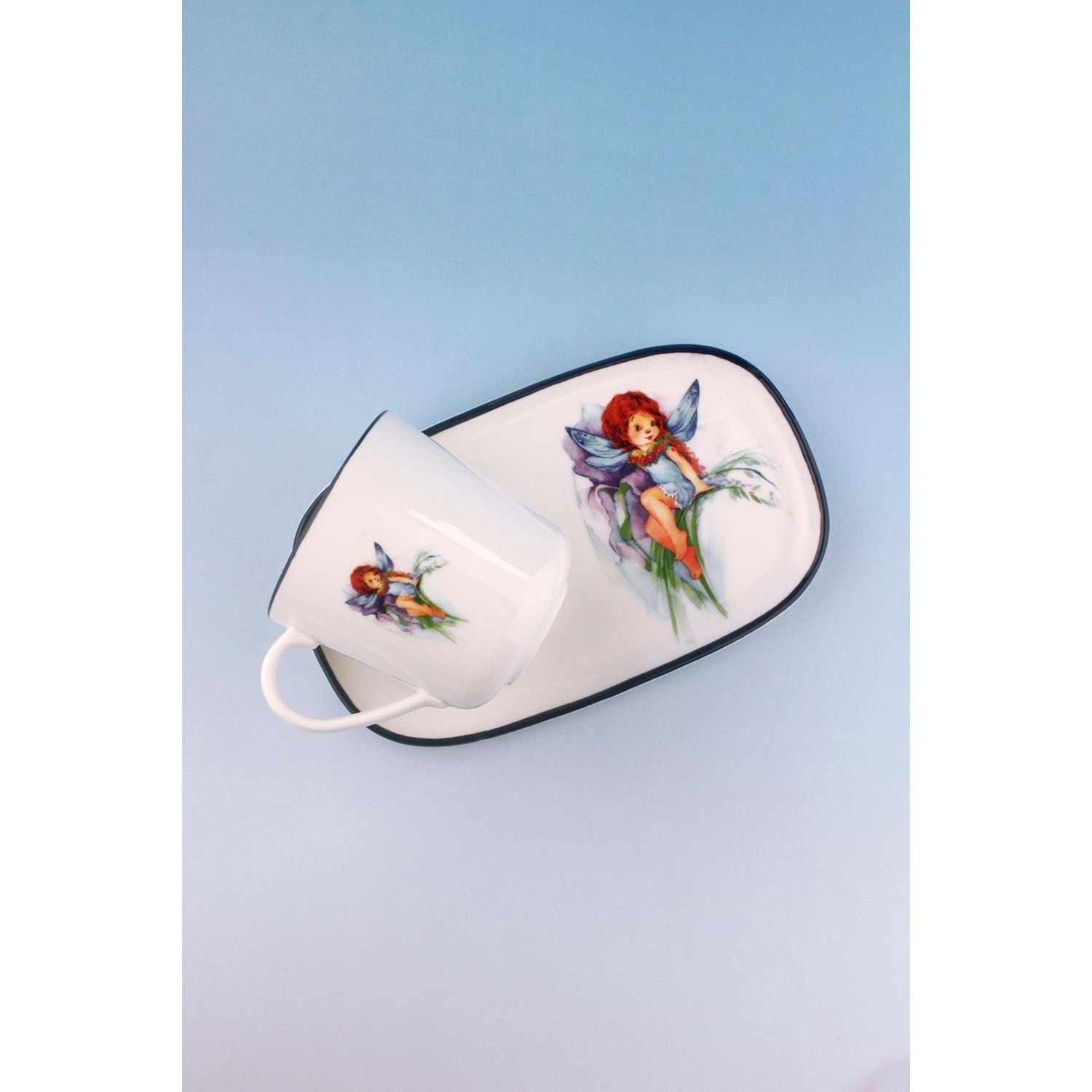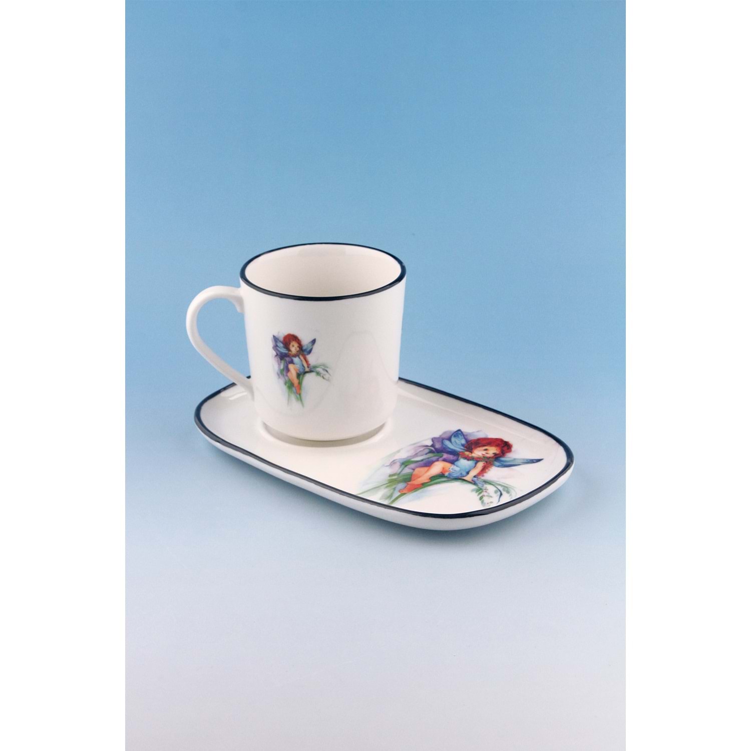 Blue fairy sunumluklu porselen kupa takımı