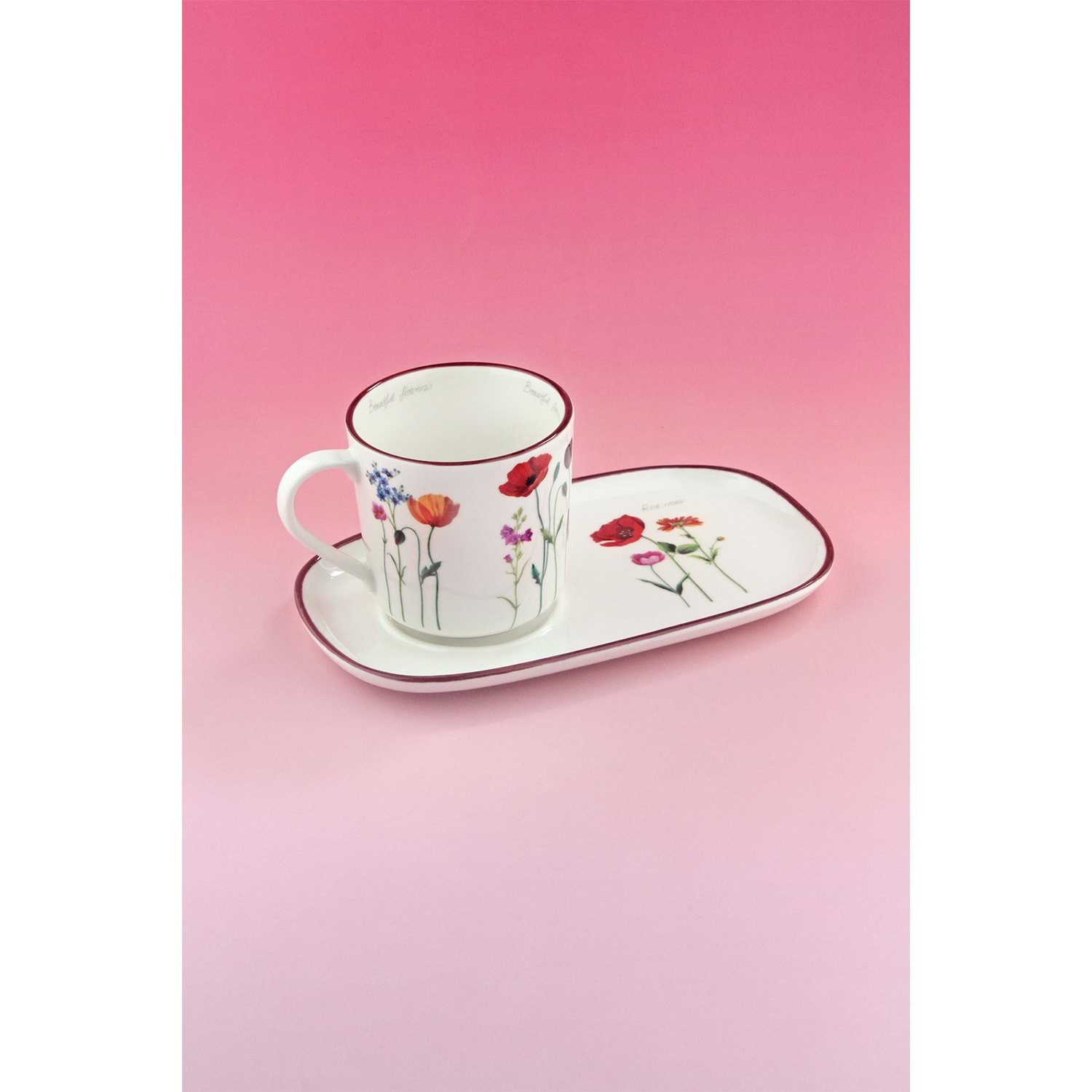Red roses sunumluklu porselen kupa takımı