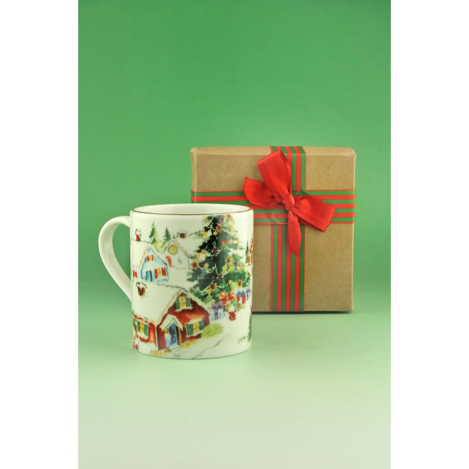 Snowy altın yaldızlı porselen kupa yılbaşı hediye kutulu