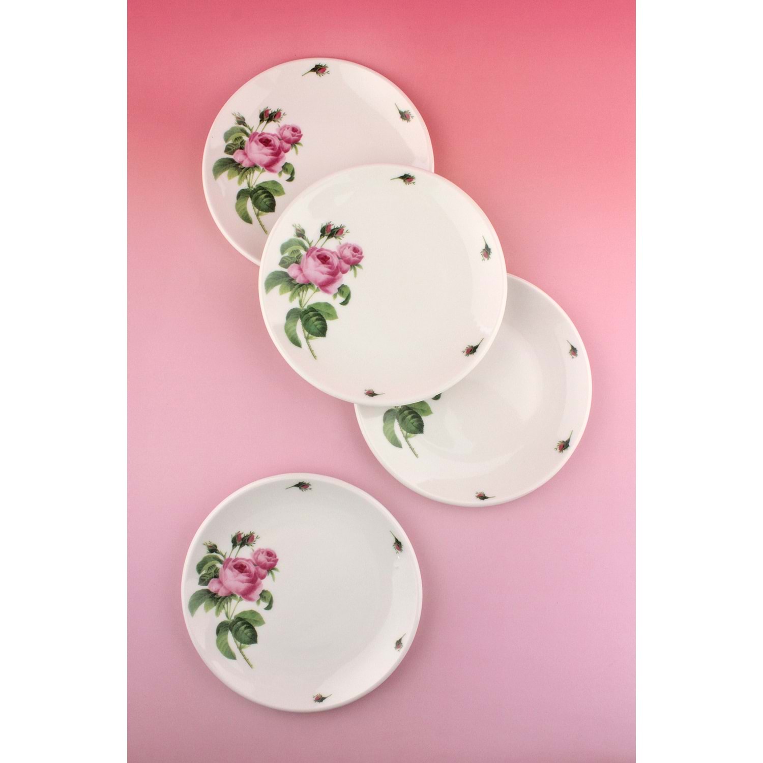 Pink rose 4 parça porselen pasta tabağı