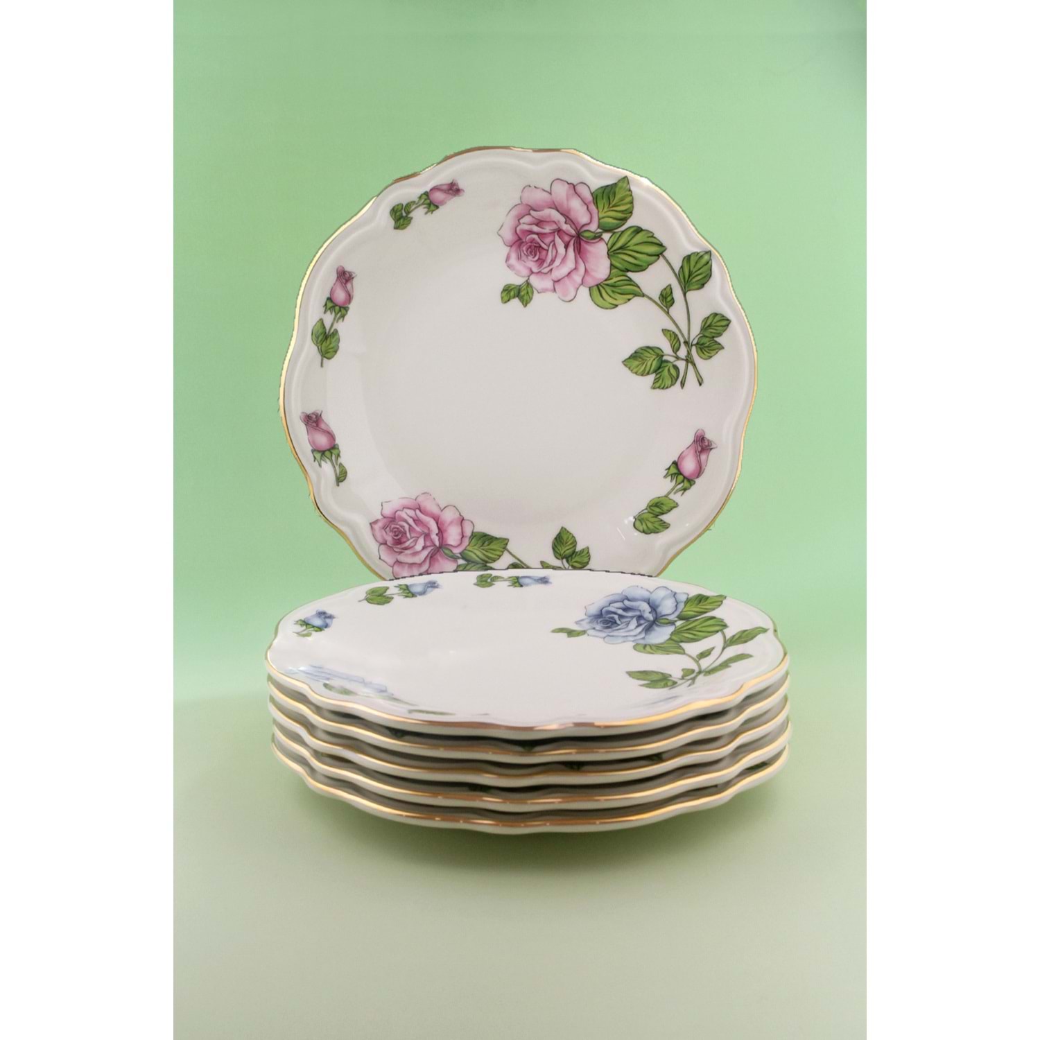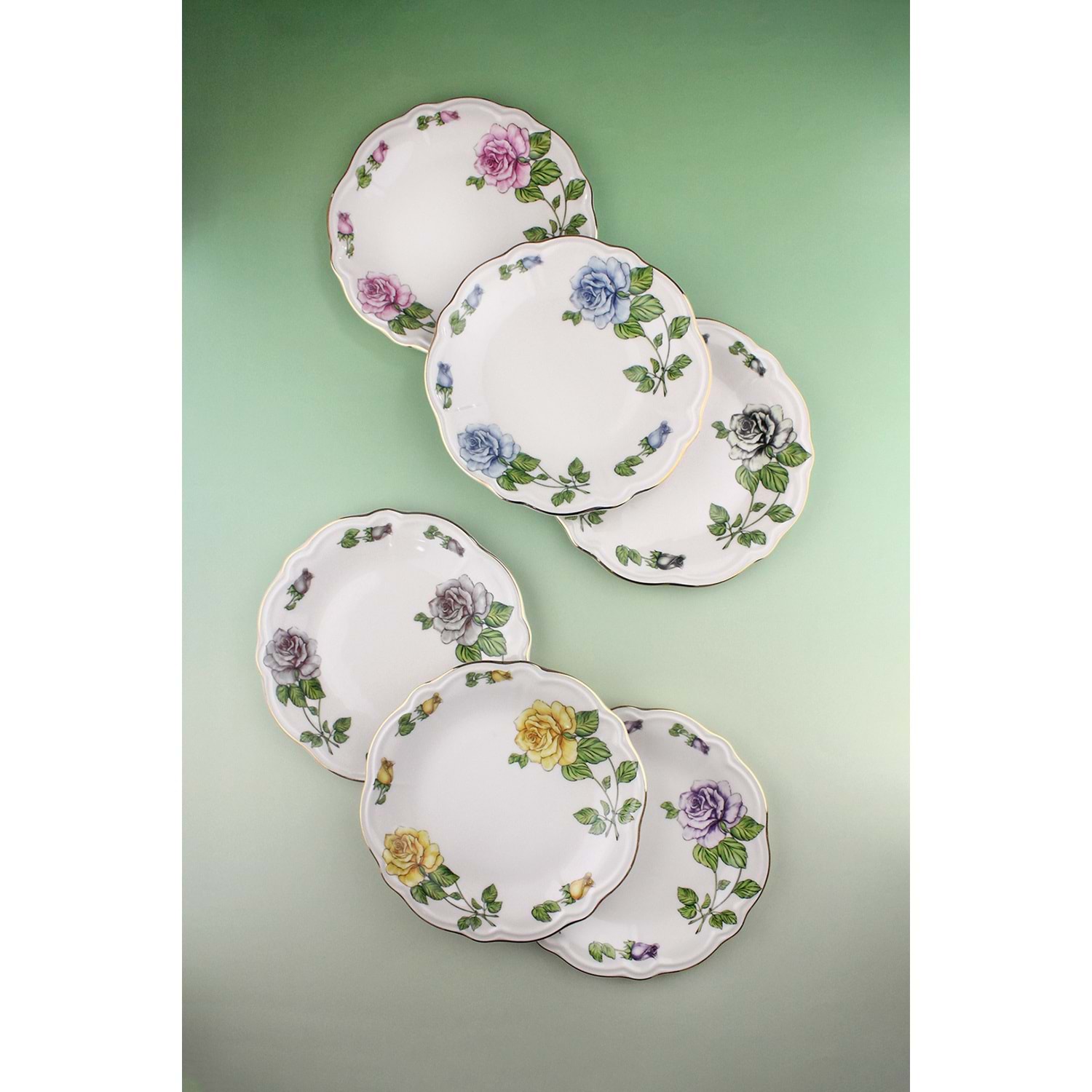 Renkli güller altın yaldızlı 6 parça porselen pasta tabağı