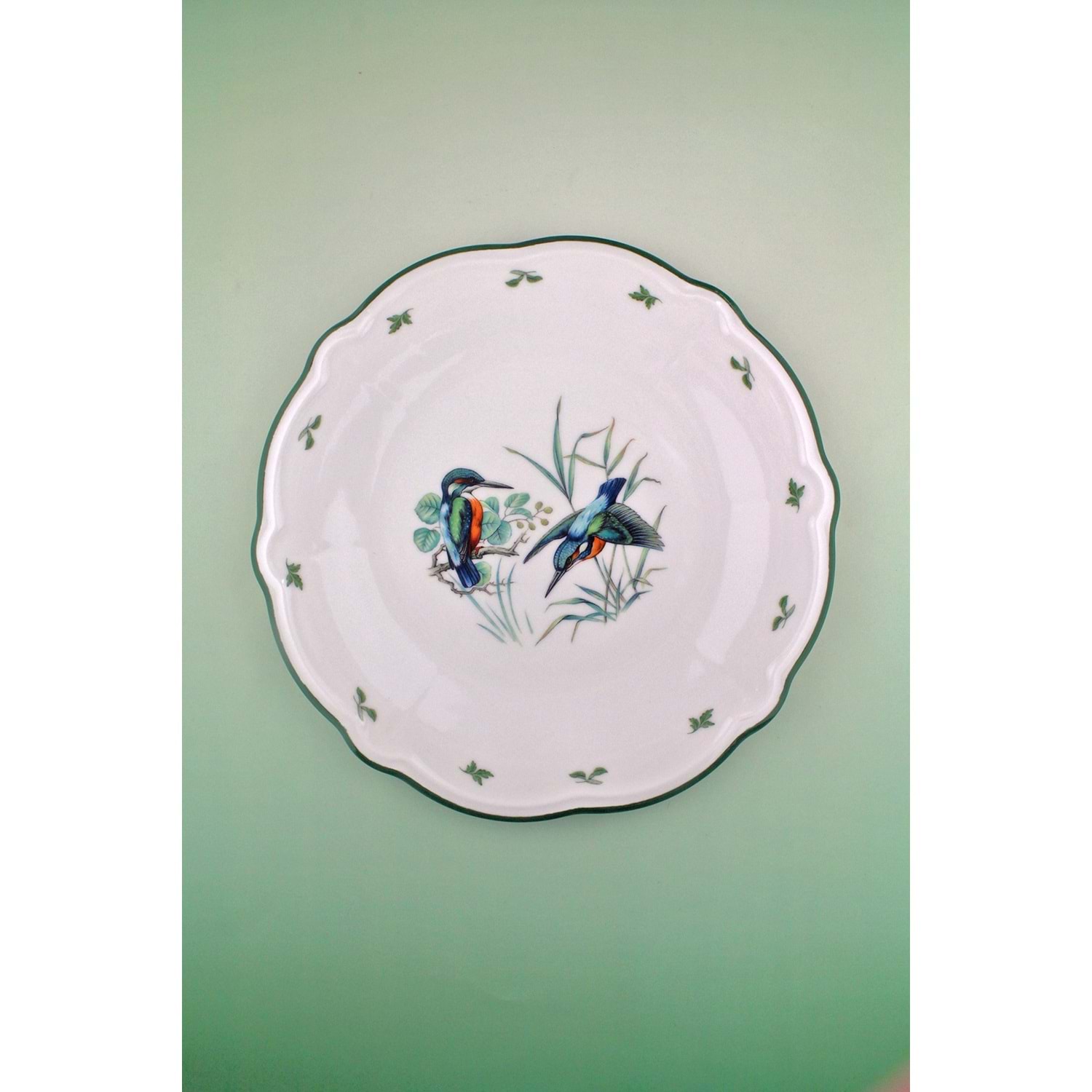 Kingfisher yeşil file porselen servis/duvar tabağı