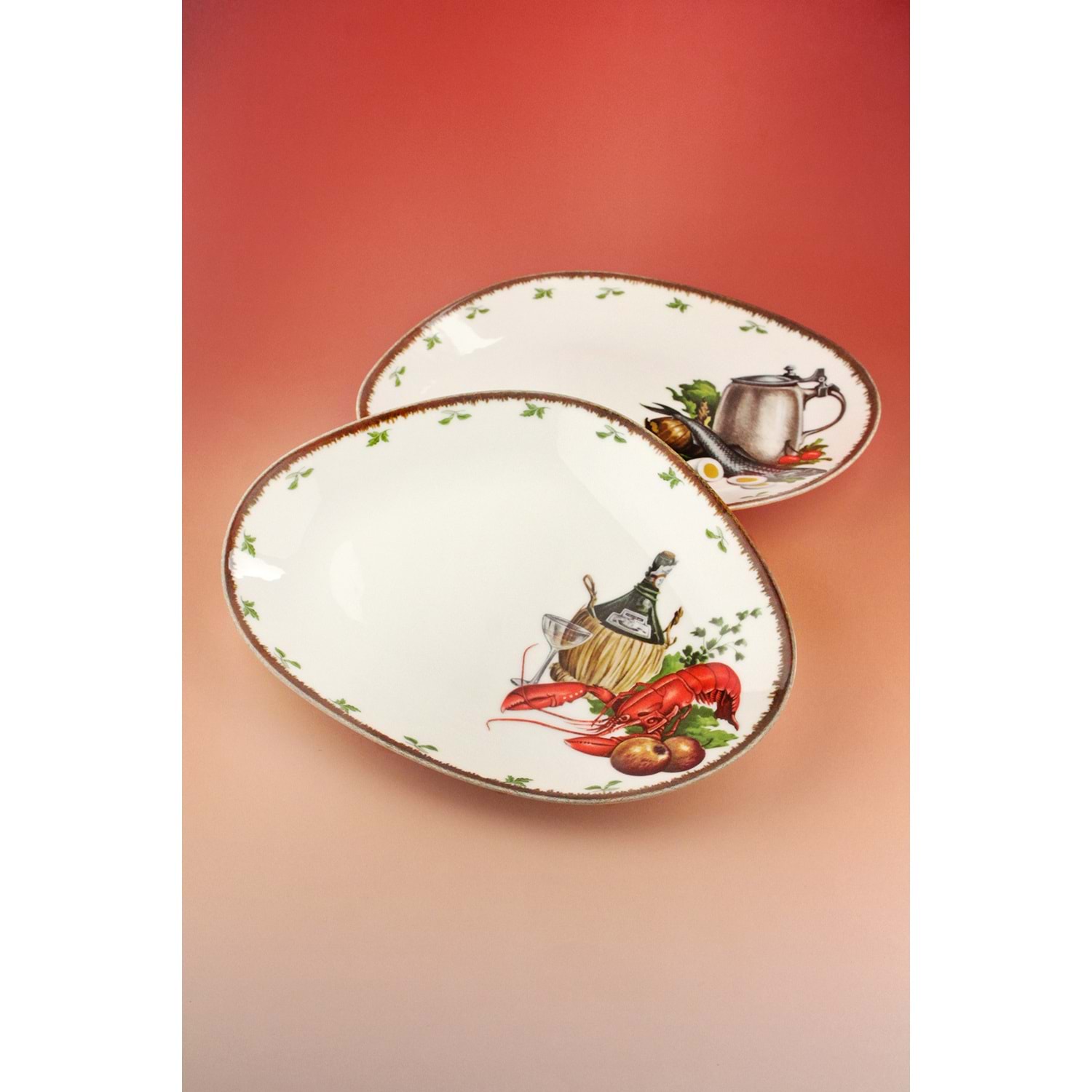 Retro lobster & fish porselen 2 adet servis/sunum tabağı