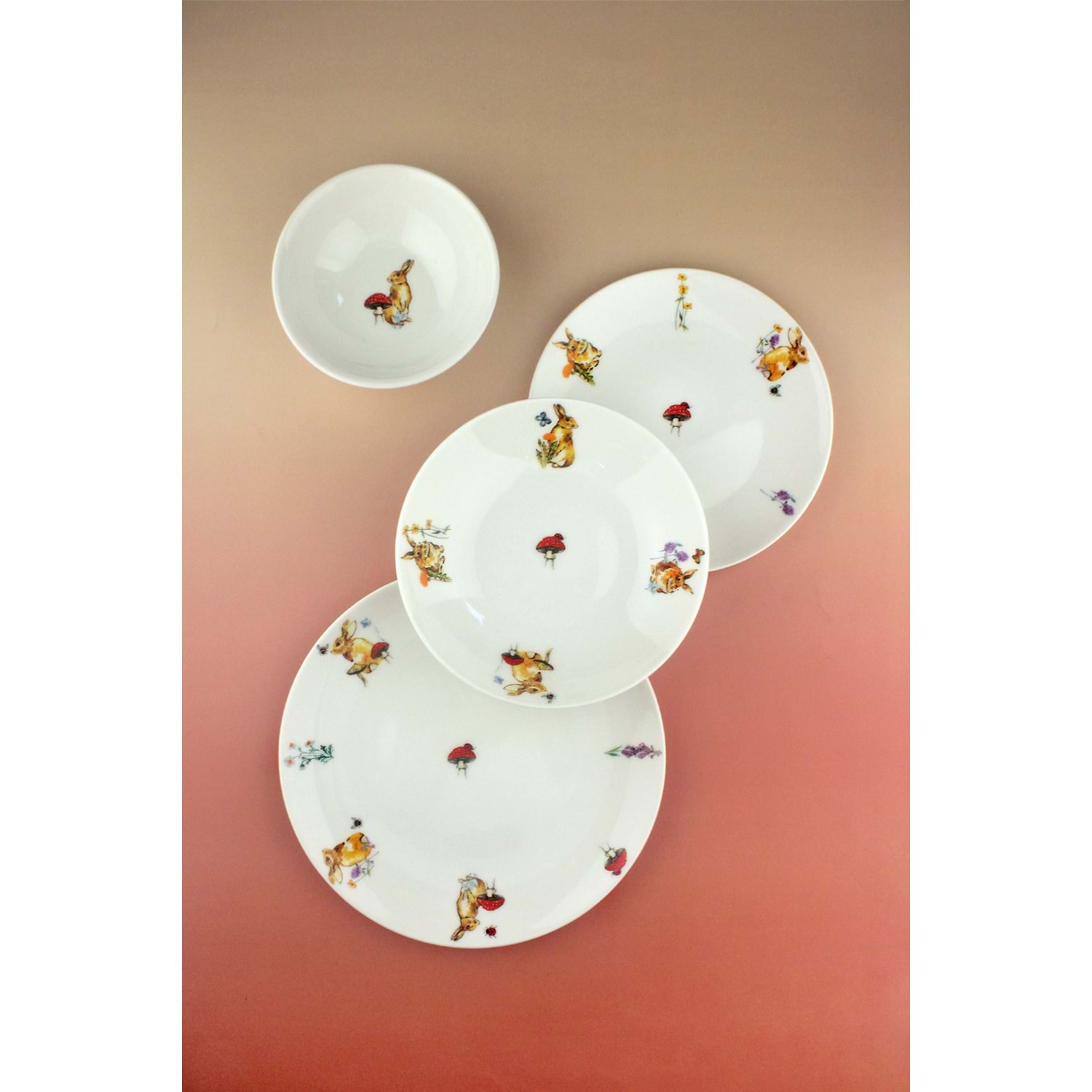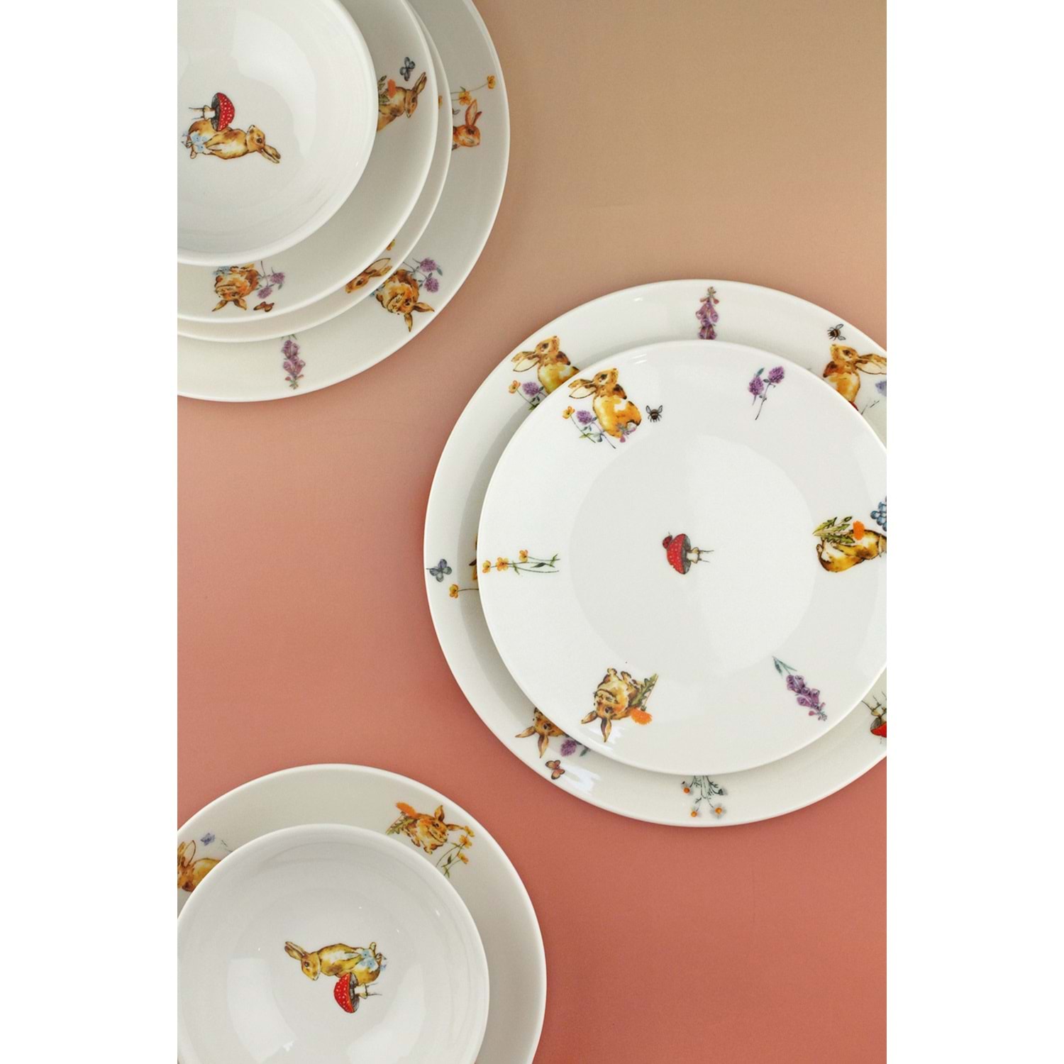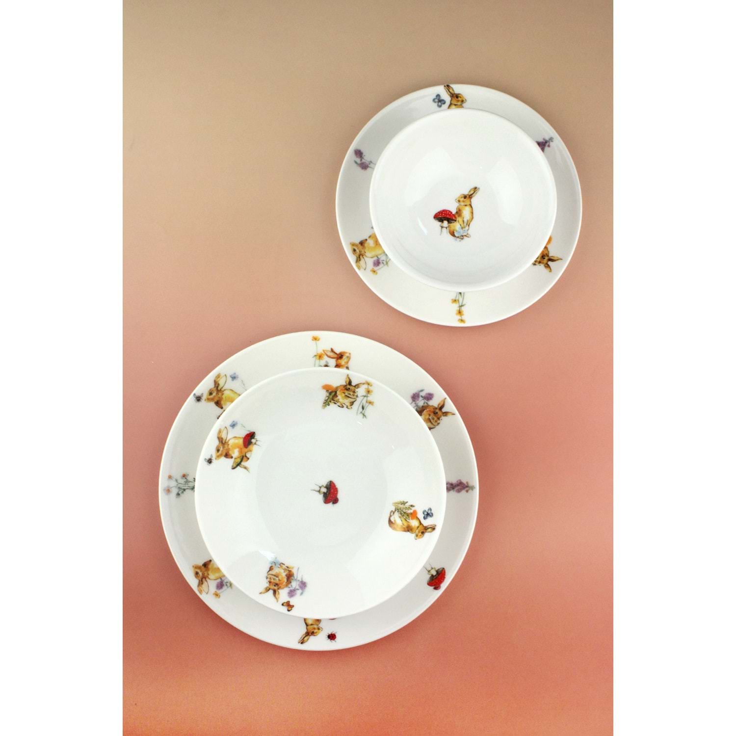 Tavşan 6 kişilik 24 parça porselen yemek takımı